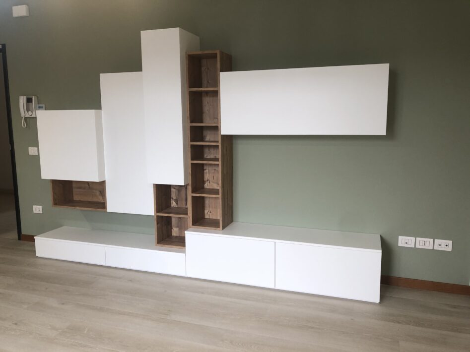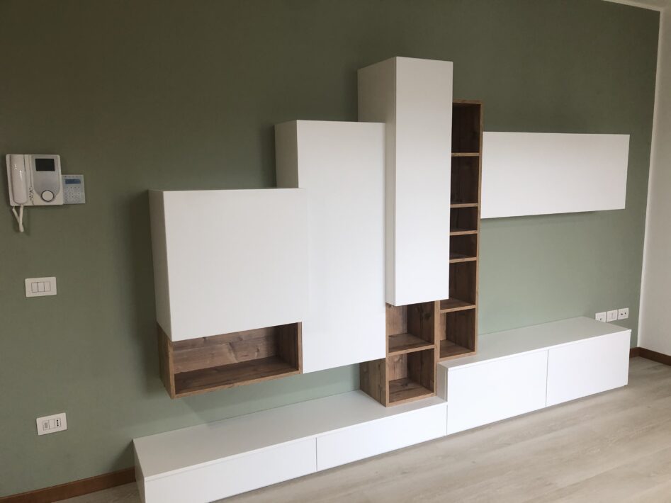 Soggiorno con moduli a sbalzo realizzato su disegno iniziale del cliente, con qualche modifica da parte nostra.